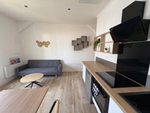 Posez vos valises dans un appartement entièrement rénové en 2025, situé dans une résidence elle aussi fraîchement réhabilitée cette année. Le tout à seulement 1 km du centre-ville et des plages, dans un quartier calme, verdoyant, et parfaitement desservi par les pistes cyclables.
